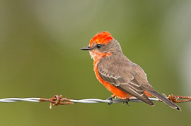 Alex knew of a particular Vermillion Flycatcher individual, and where he tended to hang around. We were fortunate, and found him 'at home'. Lighting conditions and background were problematic (bright, overcast skies) and his perch is not what I would have chosen, but this is where he liked to be, so this is where we shot him.